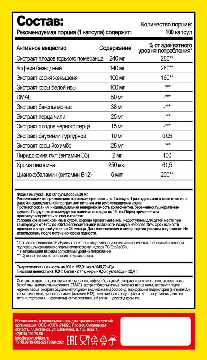 Принимать по 1 капсуле перед физической активностью.