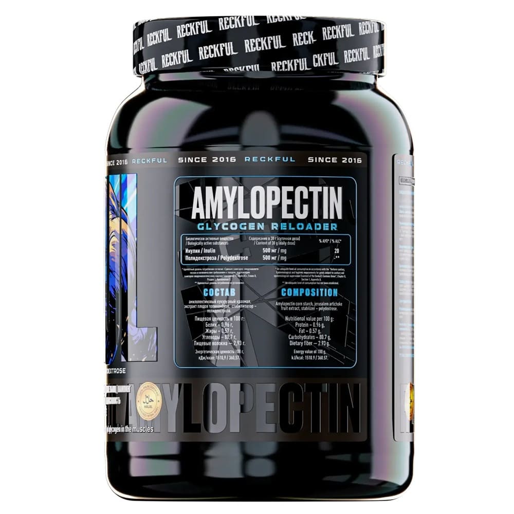 Reckful® Amylopectin 1200 г — это не просто углеводная добавка, а полноценный источник чистой энергии и быстрого восстановления. В основе — амилопектиновый кукурузный крахмал, обогащённый инулином, полидекстрозой и экстрактом топинамбура, что делает формулу особенно полезной для спортсменов, тренирующихся на результат.