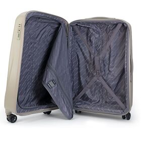 Телескопическая алюминиевая выдвижная ручка. Сверху находится прочная ручка для кратковременной переноски. Чемодан закрывается по периметру на надежную молнию. Имеет функцию увеличения объема, для чего предусмотрена дополнительная молния по периметру, раскрывающая расширение из прочного полиэстера. Кодовый замок на корпусе чемодана стандарта TSA. Внутри: подкладка с фирменным логотипом, ремни для фиксации вещей в одной половине и тканевая перегородка на молнии с карманом из сетки - в другой. Чемоданы оснащены четырьмя колесами, поворачивающимися на 360 градусов, обеспечивающими его удобную транспортировку.